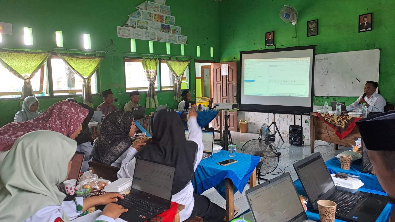 Pada hari ini Senin 2 Februari 2026 Bapak Kepala MI Miftahul Huda Warungdowo diundang kembali sebagai Narasumber Oleh Kelompok Kerja Guru Madrsah Ibtidaiyah Kecamatan Winonagan guna memberikan pembelajaran/Workshop terkait penyusunan soal AKMI berbais Computer Based Test, sebanyak kurang lebih 30 guru 20an lembaga MI di kecamatan Winonagan antusias mengikuti kegiatan tersebut, kegiatan ini membuka kesadaran akan zaman yang sudah serba digital, maka dari itu sudah sewajarnya bapak ibu guru sudah bisa membuat soal atau menggunakan CBT sebagai alat untuk mengukur kemampuan peserta didik, Pak Ion selaku narasumber menekankan kalau dulu ada 3 hal yang mempengaruhi tingkat keberhasilan pendidikan seorang anak yaitu guru, orang tua, dan lingkungan, akan tetapi sekarang sudah bertambah media sosial yang mana hampir 70% masyarakat kita sudah berjam-jam memegang HP untuk sekedar menonton media sosial, maka dari itu kita sebagai guru atau orang tua harus bijak dalam menyikapi kondisi ini, seperti halnya mengalihkan penggunaan HP yang fokus pada media sosial dialihkan dengan pemanfaatan belaja dengan menggunakan CBT, dengan seperti itu kontrol orang tua dan guru akan penggunaan HP bisa lebih terarah.